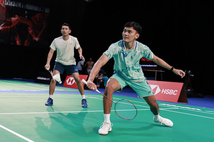 Pasangan ganda putra Fajar Alfian/Muhammad Shohibul Fikri bersiap turun di turnamen bulu tangkis BWF World Tour Super 750 Denmark Open 2025.